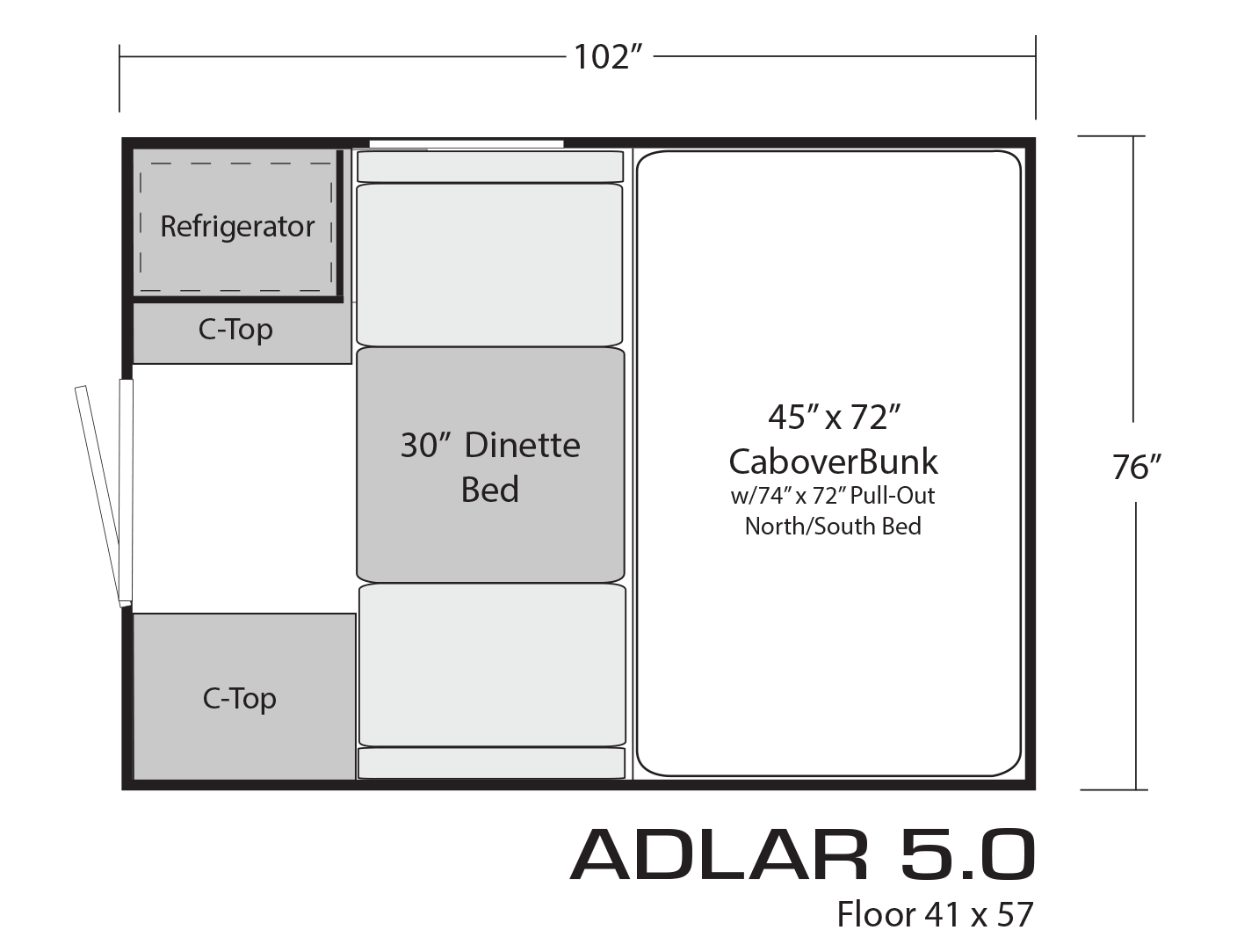 Soaring Eagle Campers has designed one of the most spacious campers ever seen for small truck models (e.g., Tacoma, Ranger, Colorado, Canyon, Gladiator, Maverick, etc.). The Adlar 5.0 is specifically crafted for smaller trucks with 5’ beds.